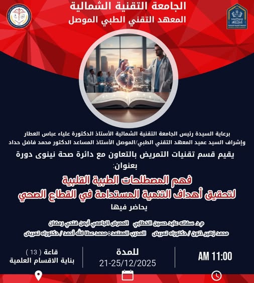 انطلاق دورة علمية على رحاب قاعة الاستاذ الدكتورة علياء عباس العطار في المعهد التقني الطبي الموصل بعنوان (الكيمياء وعلاقتها بالتغذية الصحية)