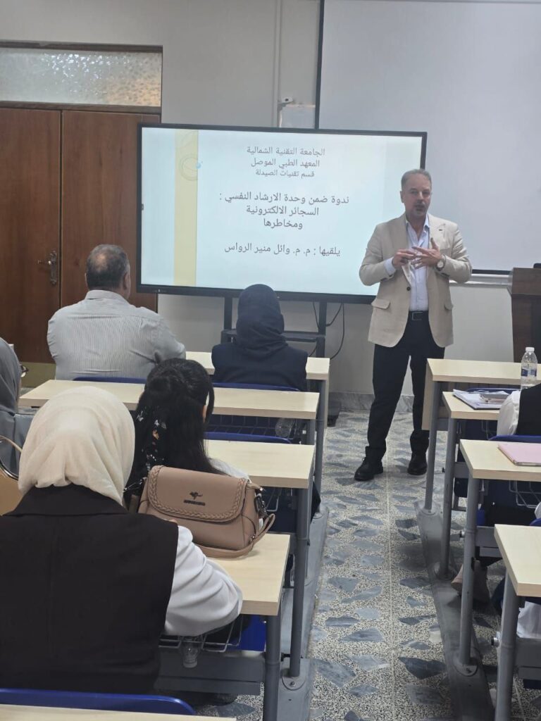 وحدة الإرشاد النفسي الجامعي بالتعاون مع قسم تقنيات الصيدلة تنظم ندوة توعوية بعنوان ” أبرز اضرار السجائر الإلكترونية “ برعاية