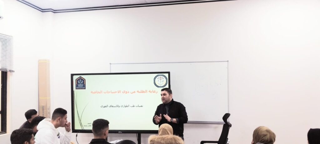 قسم تقنيات طب الطوارئ والاسعاف الفوري يُقيم جلسة حوارية بعنوان : ( رعاية الطلبة من ذوي الأحتياجات الخاصة ) برعاية